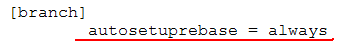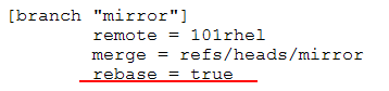 tracking,再执行rebase进行合并(下一小节将介绍rebase操作)。或者修改pull的默认操作,在.git/config文件中配置: