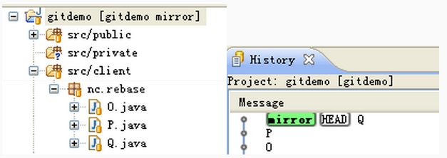 如上图可以看到历史记录的顺序是OPQABC,已经rebase成功,接着push到服务器即可。