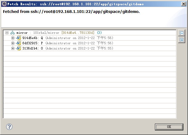 完成推送后,可以在服务器端mirror镜像的log中查看到此次记录