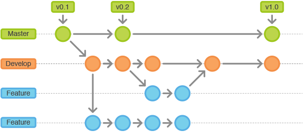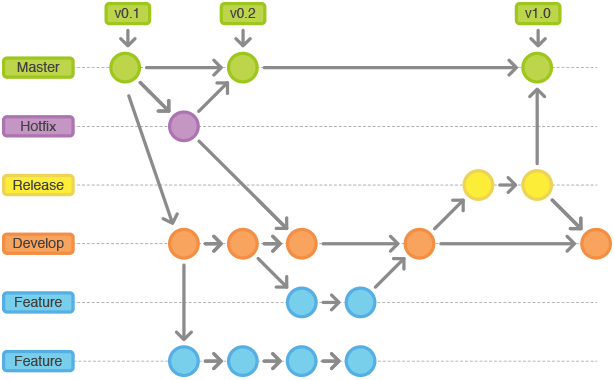 新功能一般合并到develop分支,而发布和热修复则要同时合并到develop分支和master分支上。