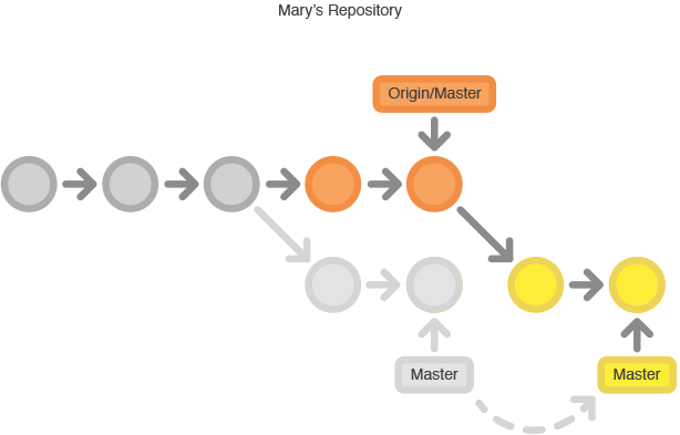这样做的意思是在说,『我要把自己的修改加到别人已经完成的修改上。』最终的结果是一个完美的线性历史,就像以前的SVN的工作流中一样。