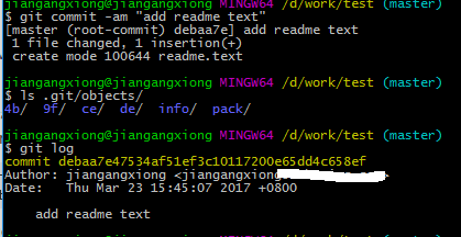和初始提交对象相比多了一行parent debaa7e47534af51ef3c10117200e65dd4c658ef,该行对应存储的校验和代表的是此次提交的父提交对象,此处即之前的初始提交对象校验和。