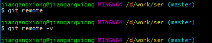 我们可以使用git remote指令查看当前仓库指定的所有远端主机的简要信息:别名列表,