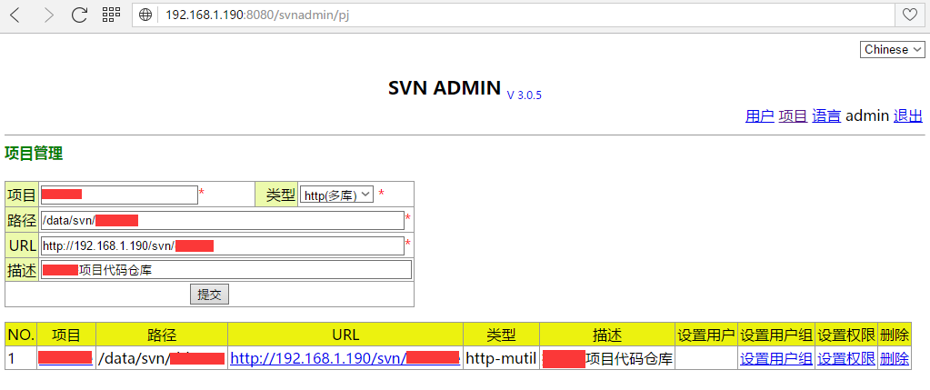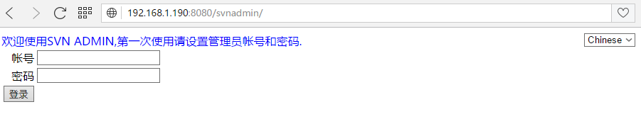 浏览器访问:http://192.168.1.190:8080/svnadmin/
