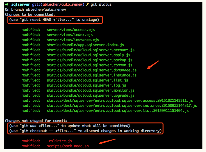 // 哪些文件发生改动,哪些文件已经提交到本机