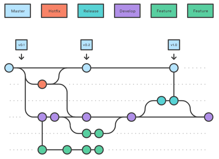 而这个模型约定了每个分支的角色,以及他们如何沟通。