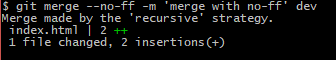③ git merge --no-ff -m 'merge with no-ff' dev
