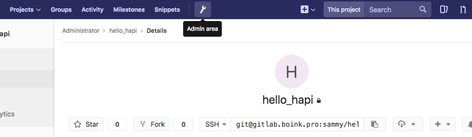 如果您希望将runner绑定到特定项目,请首先导航到GitLab界面中的项目页面。