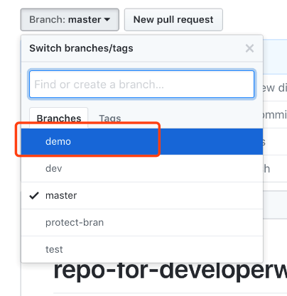 除了本地创建,然后推送到远端的方式之外,我们也可以直接在 GitHub 上创建远程分支,本地只需要