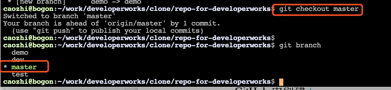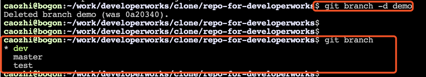 branch -a 命令列出本地所有的分支。如图 2 所示,git branch 列出了本地已经被