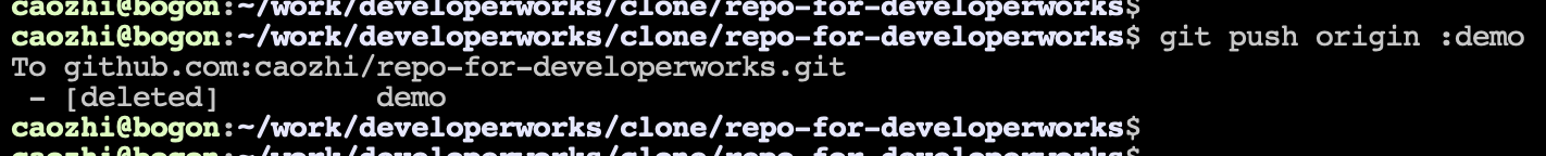 删除远端分支:git push :remote_branchname,如图 15 和图 16 所示: