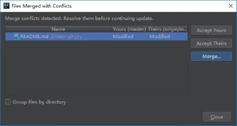 此时关闭上面的冲突窗口,Version Control工具窗口显示内容如下: