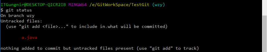 (1)查看当前状态,发现 a.java 文件没有被暂存提交: