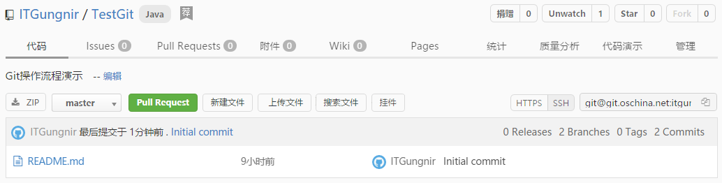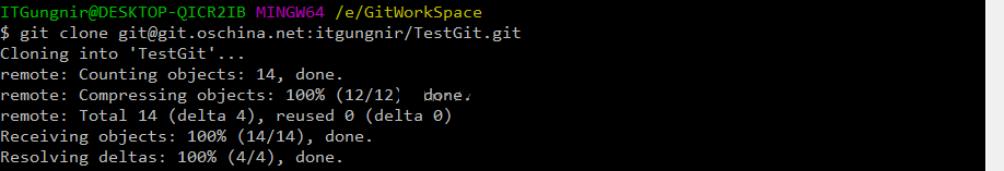 6、在控制台中输入 git clone?git@git.oschina.net:itgungnir/TestGit.git