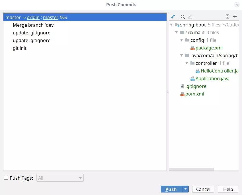 Push Tags 设置是否要推送标签,选择推送哪个标签。配置好后点击 Push (Ctrl+Enter)