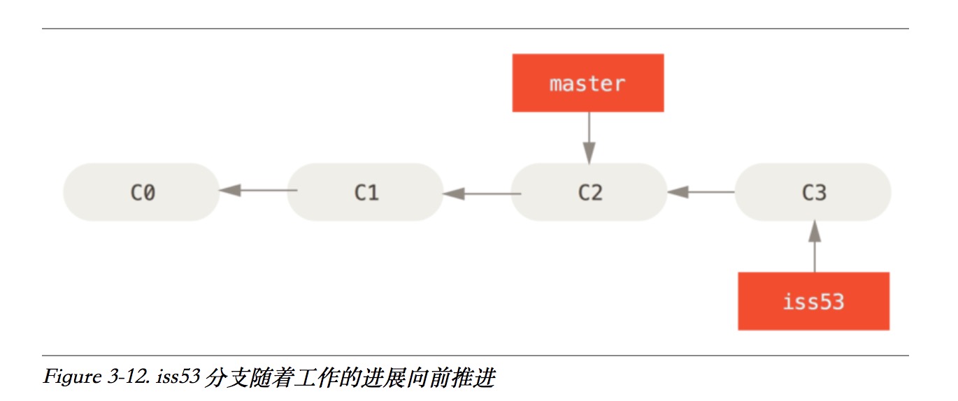 checkout -b iss53),整个分支状态如下图所示,哈哈~ 是不是感觉图很眼熟,没错,就是你想的那样的