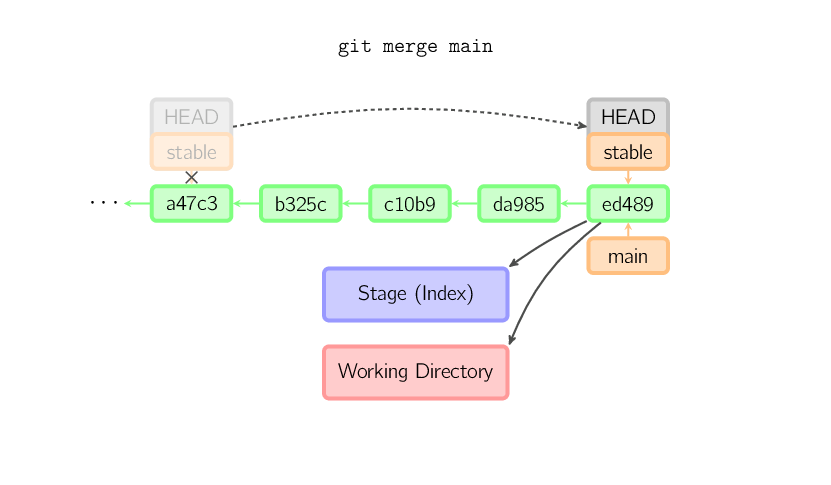 这样,stable分支就不再是main分支的祖父节点。此时,合并 (或者 衍合) 是必须的。