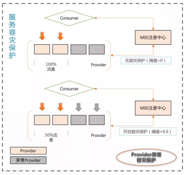 当遇到突发情况(例如,可用区断网,Provider端无法上报心跳) 或 注册中心(变配、重启、升降级)出现非预期异常时,都有可能导致订阅异常,影响服务消费者(Consumer)的可用性。