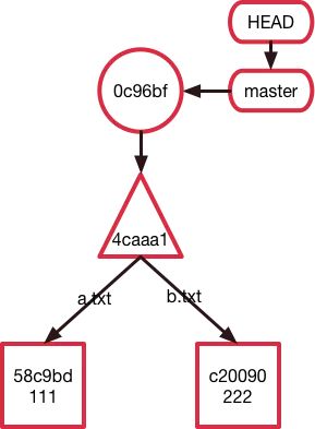object,储存了新的文件内容。并且更新了索引将a.txt指向了新建的blob object。