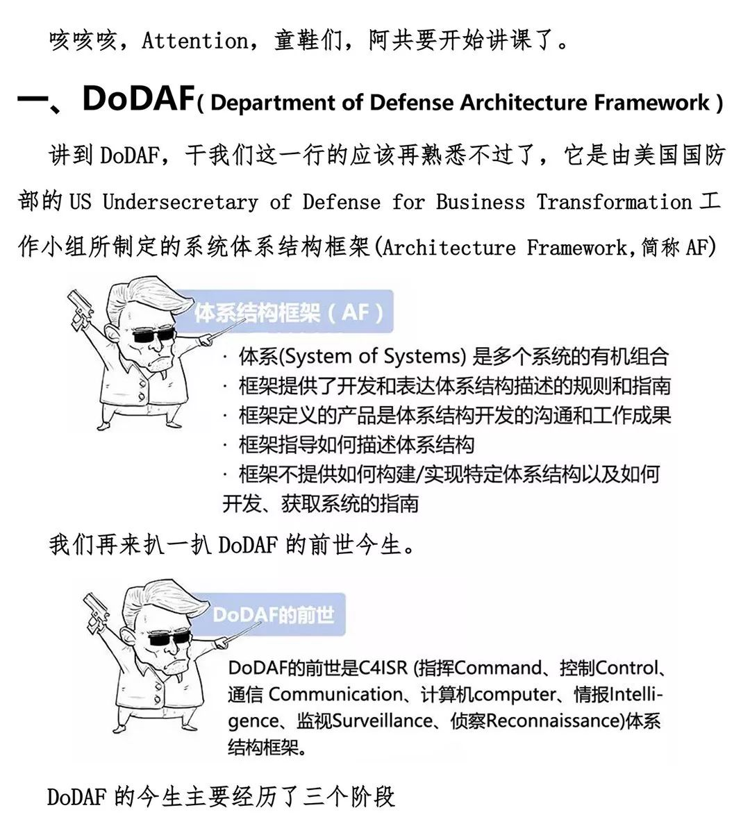 本文介绍了DoDAF的三个阶段,DoDAF2.0的八个视点和52个模型,通过图例诠释了DoDAF2.0八个视点在作战过程中的实际应用。