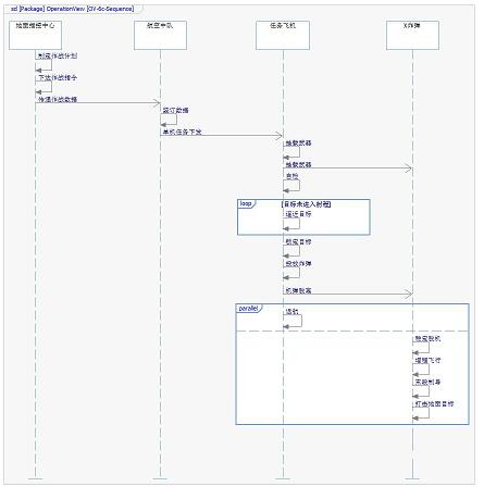 作战事件跟踪描述用来按照时间顺序检查作战节点之间的信息交换,该图辅助定义了作战节点的交互和作战的各种调度过程,使用SysML中的序列图(SD)实现。