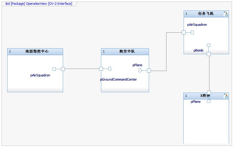 作战节点连接描述利用图形化的方法描述作战节点之间的信息交换要求,采用SysML中的内部模块图(IBD)实现。