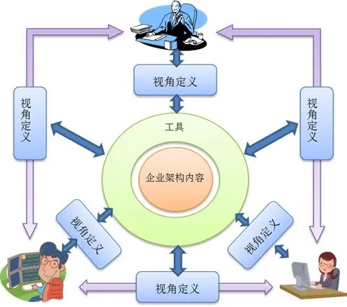 虽然针对企业架构内容的定义非常重要,但是同样重要的还有如何对企业架构的内容进行利用。企业架构的核心目标是为具有不同视角的干系人根据其关注点提供准确的视图,从而使得不同的干系人虽然采用了不同的观察角度和描述方式,但的确是在为共同的目标而进行着无障碍沟通和协作。为了达到这一目标,内容框架对于各种视角(ViewPoint)从表现形式和内容方面都进行了归纳总结,并对一些视图的开发也提供了建议和指南。TOGAF是一个通用性的标准,它的内容不可能涵盖企业中所有的视角,因而在具体实践中,各个企业完全可以根据自身需要对这些视角进行引用、修改和组合,从而总结出适合的视角,并借此开发出相应的视图,从而满足企业中具体干系人的需要。