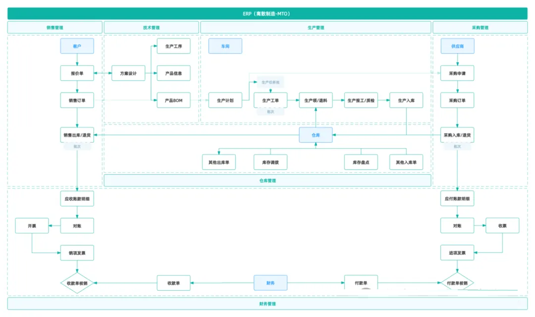 不妨将ERP视作这家工厂的大脑与中枢神经系统。ERP是一个综合性的软件系统,旨在管理并整合企业内部的各类核心业务流程与数据。在这家工厂里,ERP系统掌控着从采购原材料,到生产调度、库存管理、销售订单,再到财务以及人力资源等各个环节的运营。