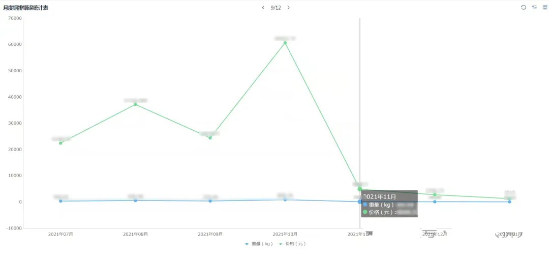 简道云ERP系统上线后,事业部要求工人在加工前填报领料数量、加工后填报铜母线完工数量,其中数量差就是生产废料。由于废料产生的数据透明、责任到人,月底会自动统计所有人的出错率并挂钩绩效,工人作业时更加小心谨慎,错误率大幅下降。