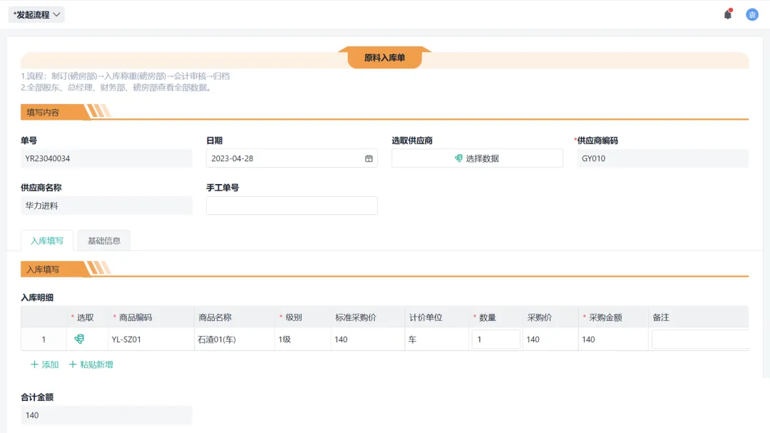 使用简道云ERP系统后,企业根据业务场景搭建适应业务流程《原料入库单》结合《原料采购价格单》自动引出此供应商原料采购价格。并根据业务场景搭建适应业务流程《出泥记录单》,每次记录出泥车数。