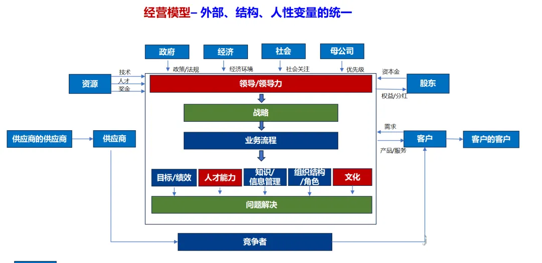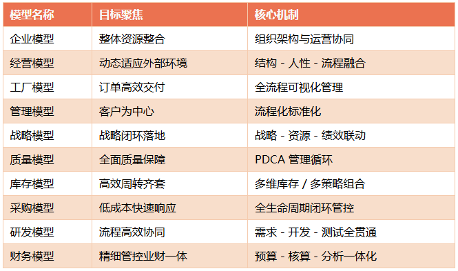 企业模型 :通过对企业内外资源的统一整合,构建战略、经营、创新三大能力有机结合的高效协同管理架构。