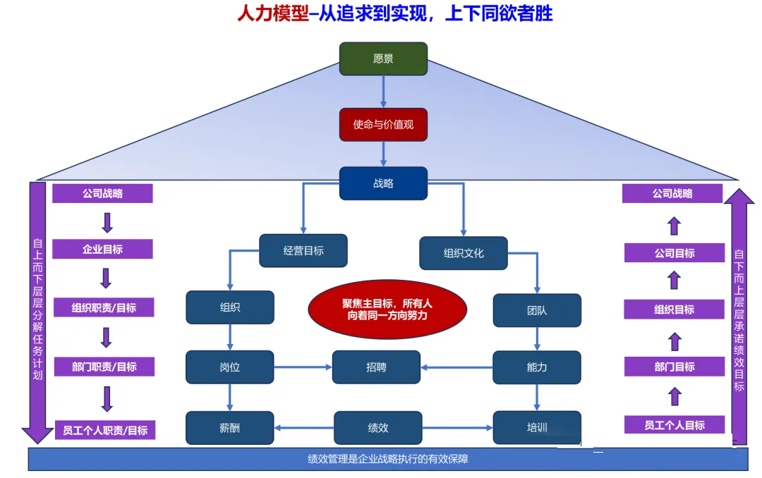 人力资源模型 :从公司战略目标到员工的个人目标的层层分解和承诺,使人力资源体系产生共鸣。