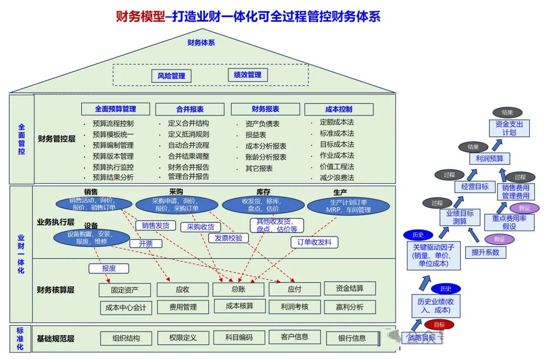 财务模式 :实现了业务与财务的整合,对预算、成本、绩效等进行了全面细致的控制。