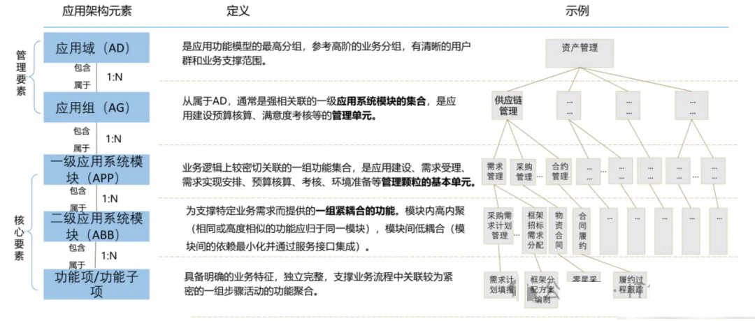 应用架构(Application Architecture):实现的载体,规划“用什么系统做”。