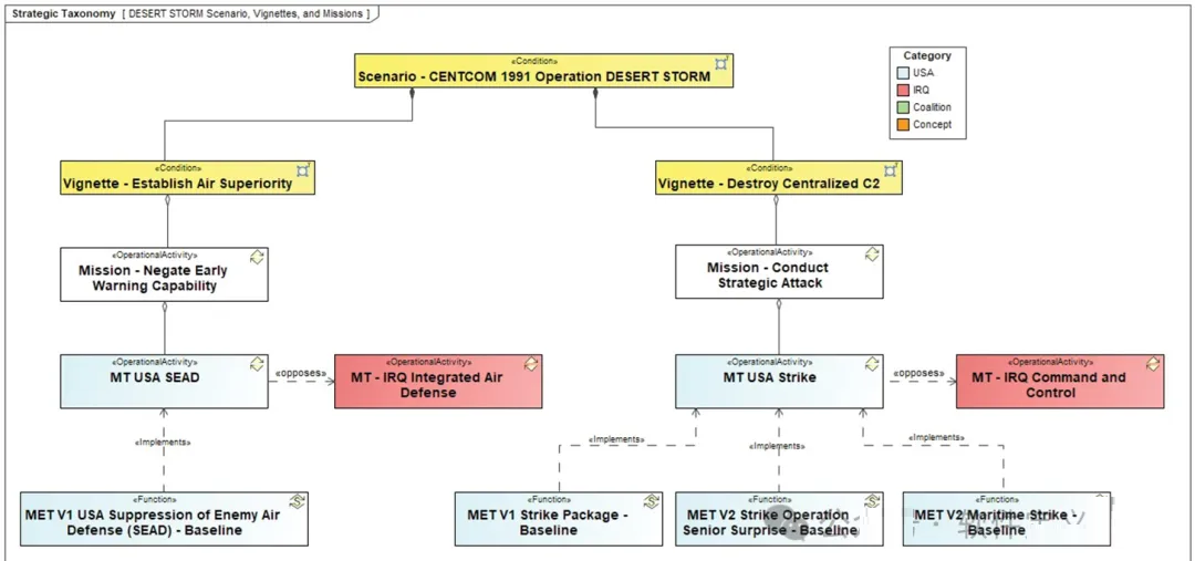 在组织任务架构的模型结构时,应该采取联邦的、模块化的层级结构。红色虚线以上是解决方案无关的,虚线以下是解决方案相关的。↓