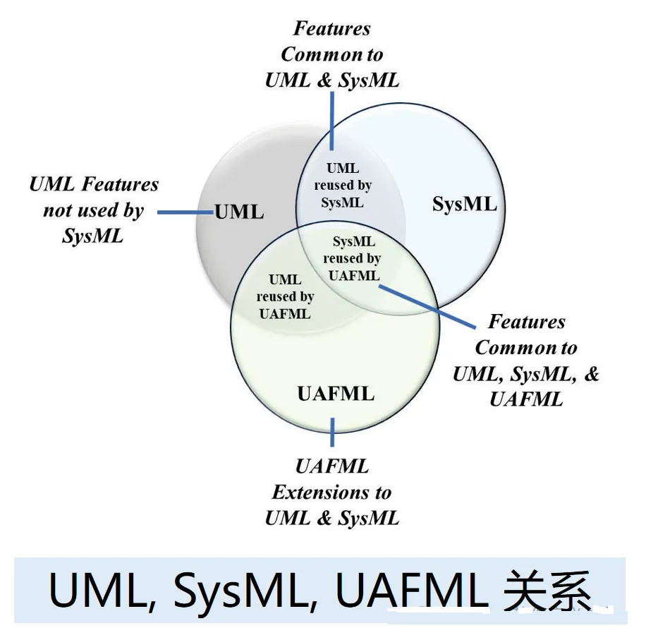 UAF采用UAFML建模语言,它与其他建模语言的关系如下图: