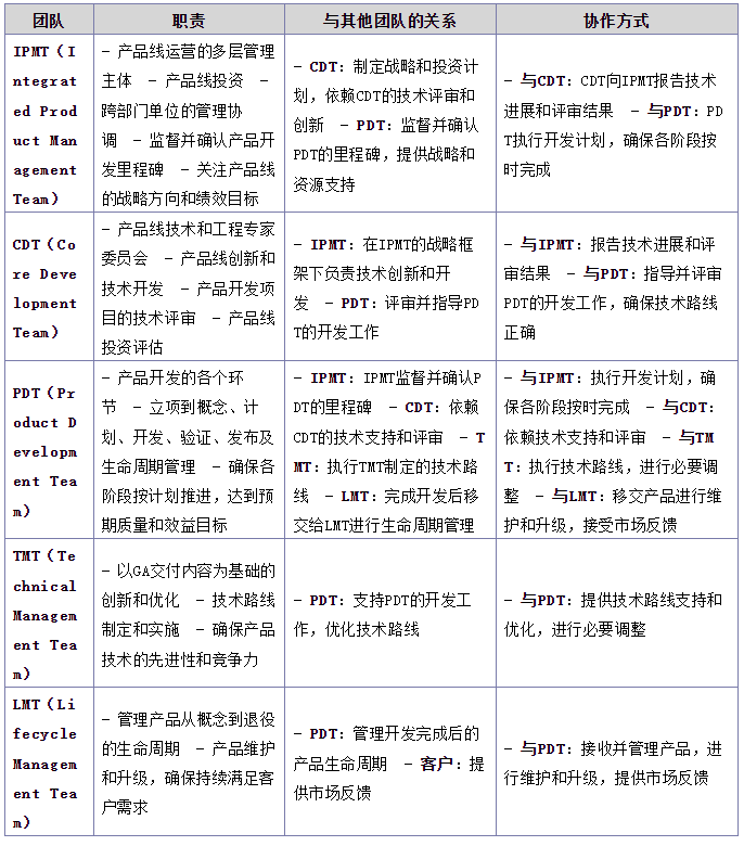 IPD 中,跨职能团队是核心组织形式,负责整个产品开发过程的管理和执行。