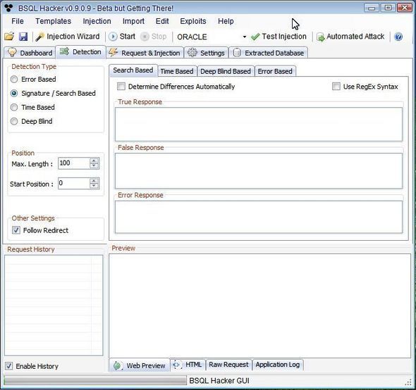 Hacker的适用群体是那些对注入有经验的使用者和那些想进行自动SQL注入的人群。BSQL Hacker可自动对Oracle和MySQL数据库进行攻击,并自动提取数据库的数据和架构。