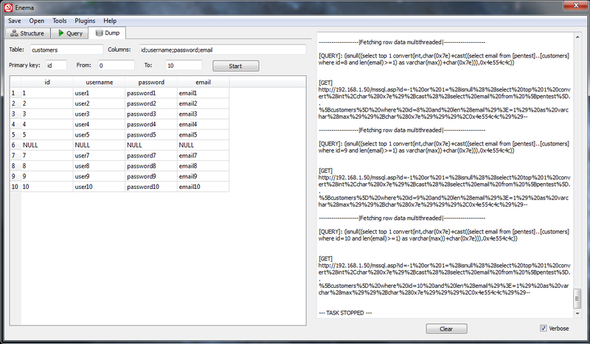 SQLi需要一定的相关知识。Enema SQLi能够使用用户自定义的查询以及插件对SQL Server和MySQL数据库进行攻击。支持基于error-based、Union-based和blind