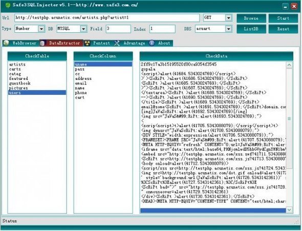 SQL Injector具备读取MySQL、Oracle、PostgreSQL、SQL Server、Access、SQLite、Firebird、Sybase、SAP
