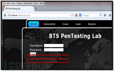 访问网站的登录页面,输入正确的用户名和错误的密码