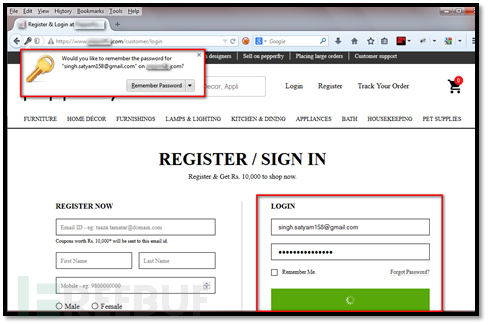 如果用户确认保存密码之后,密码就会存储到浏览器中。在FireFox中你可以通过点击工具→选项→安全→保存的密码