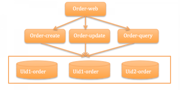 系统演进如下图所示。服务垂直化了,但是数据没有完整隔离开,服务之间还需要互相访问非自己的数据。