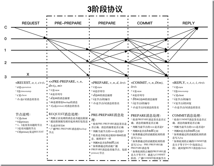 这个算法在保证活性和安全性的前提下提供了(n-1)/3的容错性,也就是节点数需要达到3f+1个节点才能容错f个节点。