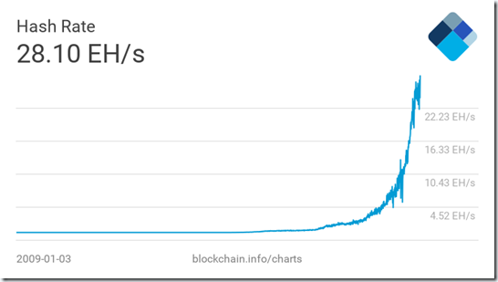 这是最新的比特币历史算力曲线,现在的算力已经相当惊人,这样就意味着,后面后200多万台专业的比特币矿机在运行!!!