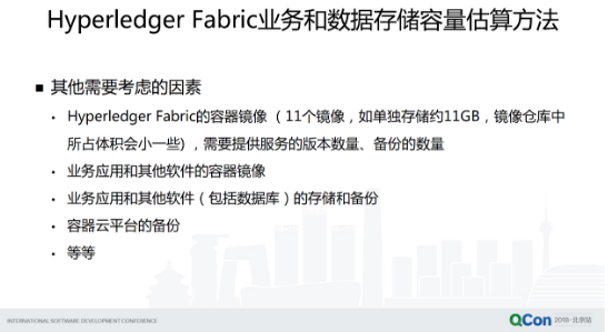 其他还有一些比较次要的考虑因素,比如说 Fabric 容器镜像开销,Fabric 涉及到容器镜像从三五百兆再到