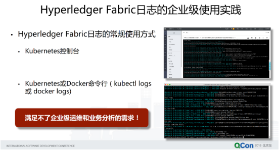 logs 或 docker logs 命令,也可以看到每个节点的容器的日志信息。但问题是这些手段满足不了企业级运维和业务分析的需求,这里所面向的对象很可能是区块链运维系统的团队,甚至某些场合下会涉及到业务相关的团队。