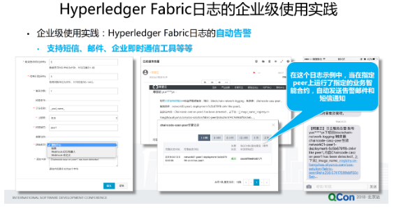 Peer 节点上是否有运行某个特定,如某个高敏感性 chaincode 应用,设置这样一条规则,在配置好规则以后,后面当我业务系统一旦满足这个条件,那么就会自动通过邮件,以及短信,向用户自动发送告警,并且运维人员在告警记录里面可以看到告警的这个过程。