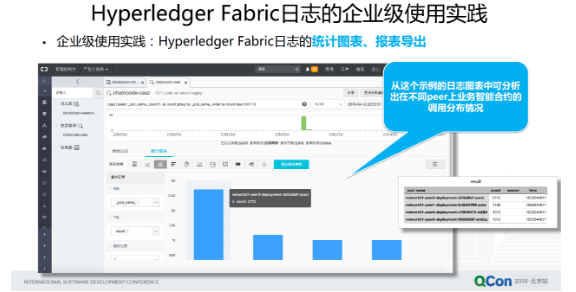 这些日志分析图表可以作为业务团队去分析,比如说在不同业务区域,进入区块链业务系统流量的差别,或者说跟不同企业对接的区块链业务系统,它的流量差异等等,都可以作为一个业务分析的依据,以及说后续可以导出成