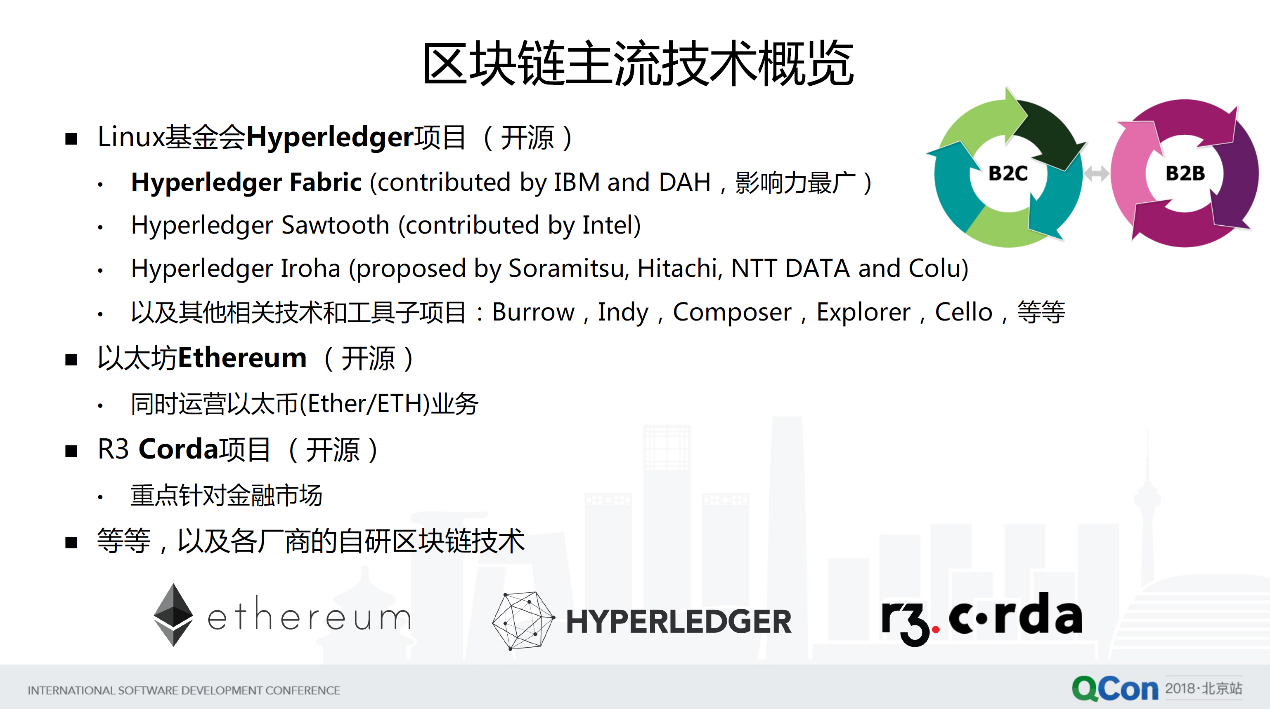 其他的实现技术还有以太坊,以太坊早期是从以太币发展起来的,那么现在也有一些面向商业场景以及联盟链的分支技术。